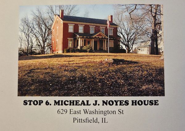 Michael J. Noyes was a native of New Hampshire. He came west settling in Pike County, Missouri for many years before moving to Pittsfield in 1841. Noyes was the founder and editor of Pike County’s first newspaper in 1841. The “Sucker and the Farmer’s Record” newspapers of the day along with Noyes family history state that Abraham Lincoln gave a speech here.