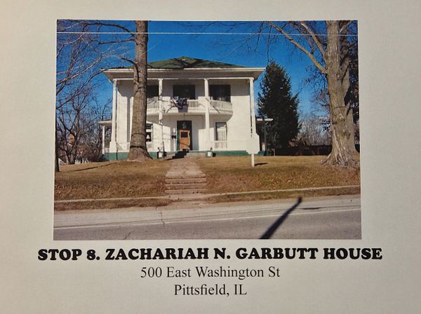 Zachariah Nairn Garbutt was born in New York in 1814. He studied law in Washington, D. C. Later he moved west settling in Jacksonville, Illinois where he continued the reading of law. In May of 1839 he received his license. In that same year he came to Pike County, Illinois.